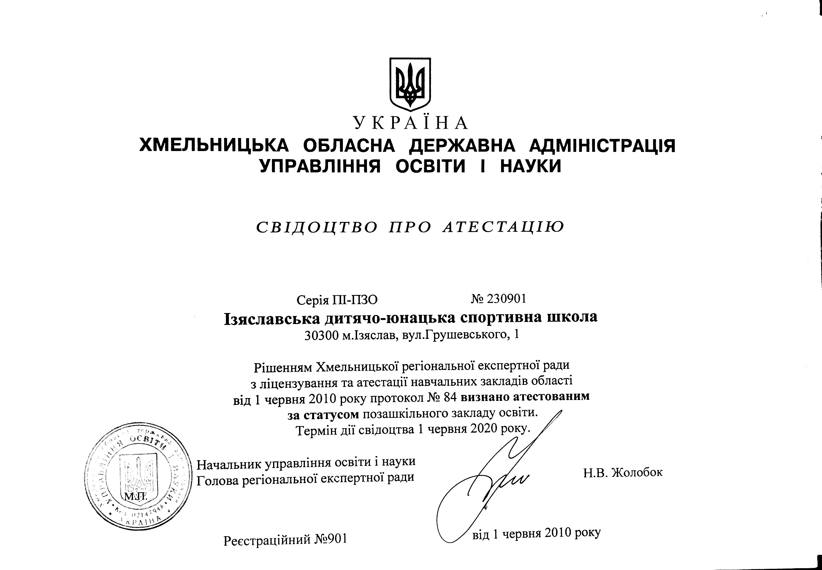 свідоцтво про атестацію закладу